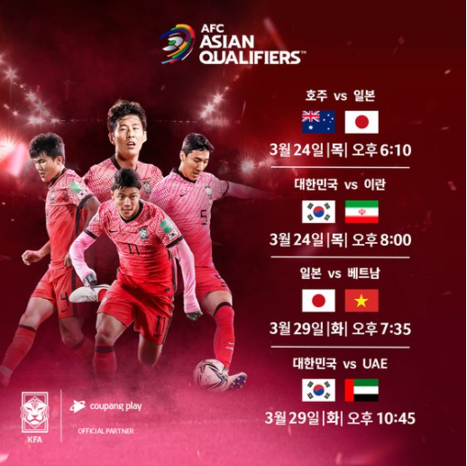 또한 3월 29일 UAE(아랍에미리트)의 원정경기까지 인터넷 생중계 시청이 가능합니다. 이번 카타르 월드컵 예선전은 이란과 9차, UAE와 10차전을 끝으로 최종예선 일정이 마무리 됩니다.