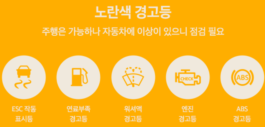 - 노란색 - 주의 신호 : 자동차에 이상이 있으니 점검 필요